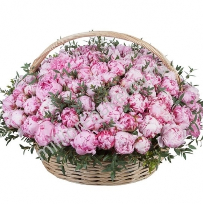 VIP корзина голландских пионов с добавлением зелени. Роскошный подарок, на который способны не многие.