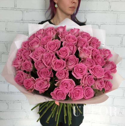 51 розовая роза в упаковке | Купить в Домодедово