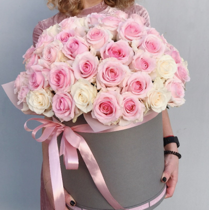 Коробка с розовыми и белыми розами | Купить в Домодедово