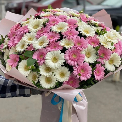 Букет из 101 белой и розовой герберой | Купить в Домодедово