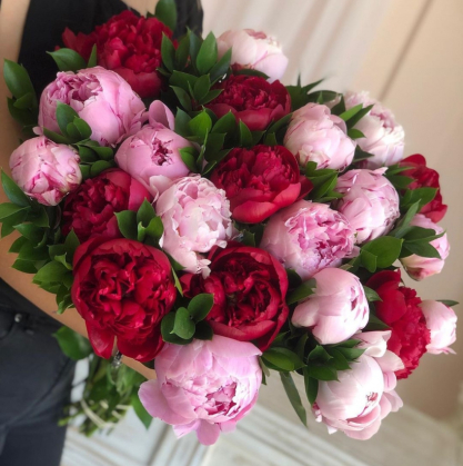 Букет из 21 розовых и красных пионов | Купить в Домодедово