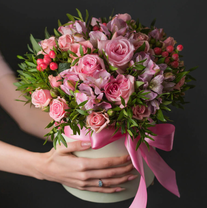Букет в коробке из кустовых роз и альстромерии | Купить в Домодедово
