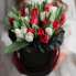 Коробка красных и белых тюльпанов | Купить в Домодедово
